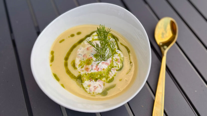 Kylmäsavukirjolohi on suomalaisten yksi suosikkikaloista, ja sekin pääsee keittoon – tosin tällä kertaa moussena, valmista keittoa maustamaan.