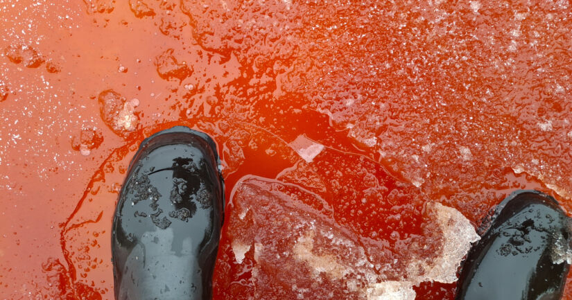 LUONTO Suomen ympäristökeskus kertoo, että punaiseksi värjäytynyt jää ja vesi on herättänyt huomiota Suomenlahden rannikolla Helsingin edustalla.